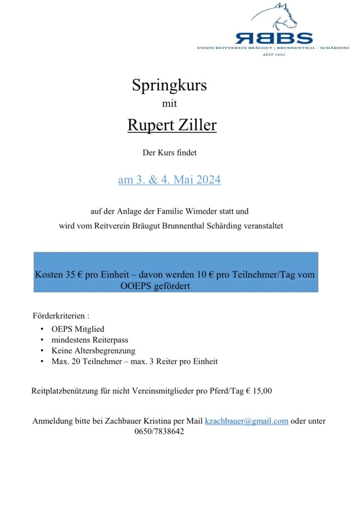 Springkurs mit Rupert Ziller Verfasst vonrbbs-reitverein1. April 20241. April 2024Veröffentlicht inAllgemein Teilen mit: Auf X teilen (Wird in neuem Fenster geöffnet) X Auf Facebook teilen (Wird in neuem Fenster geöffnet) Facebook Gefällt mir Wird geladen … Ähnliche Beiträge