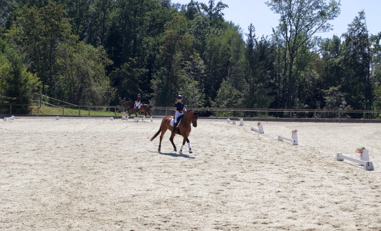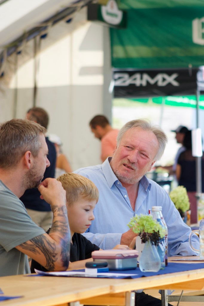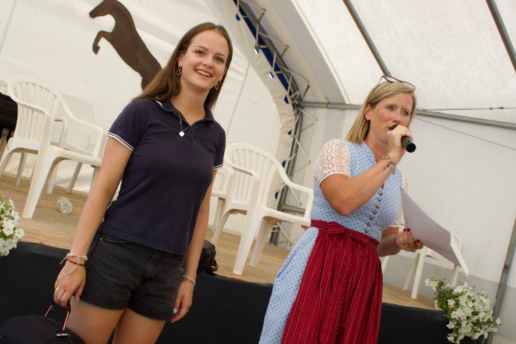 Die Schattenplätze unter den Bäumen, Sonnenschirmen sowie im Festzelt wurden gerne genutzt, um bei Kaffee und Kuchen das Geschehen auf dem Reitplatz zu beobachten.